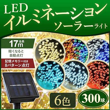 300球 イルミネーションライト 屋外 ソーラー 防水 8パターン点灯 ガーデンライト LED メモリー機能 自動点灯 省エネ クリスマス 安心の日本法人 メーカー対応 (ホワイト, 300球 / 17メートル)