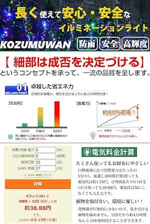 【広拡散LEDを採用して一粒一粒が明るくてどの方向から見ても綺【電気安全法PSE適合品(経済産業省に事業届出提出済み)正規メーカー品】イルミネーションライト定番商品 LED数100球 長さ10m 線径1.8mm 連結コネクター付 1000球まで連結可能。8つの点灯パターン メモリー記憶付き(コンセント抜いても再度差込むと同じ点灯パターンになるので再設定の手間がかかりません。)