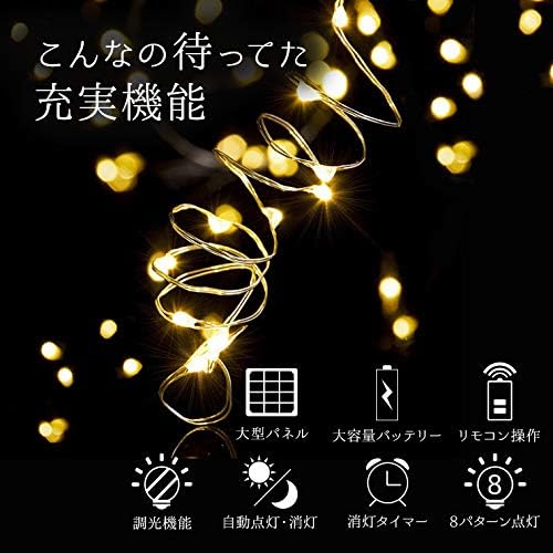 電光ホーム ソーラー LED イルミネーション ジュエリーライト [ 8パターン 点灯 / 10m 100球 ] 屋外 防水 防雨 ガーデン 屋外イルミネーション (シャンパンゴールド)
