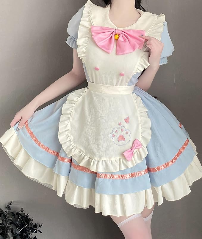[YZZYQQ] メイド服 可愛い メイド服 コスプレ コンカフェ メイド エプロン メイド コスチューム 仮装 メイド喫茶 カフェ仮装 萌え コスプレ 衣装 フリル ロリータ