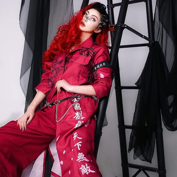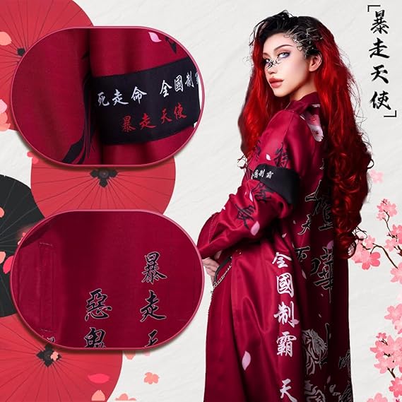 [Hotiego] ハロウィン 特攻服 コスプレ ヤンキー 赤 喧嘩上等 ツッパリ 不良 暴走族 暴走天使 聖夜制覇 走死走命 天上天下唯我独尊 愛羅武勇 コスチューム 男女兼用 舞台装 演出服 変装 仮装 イベント 忘年会 cosplay 撮影 祭り 龍虎 XS