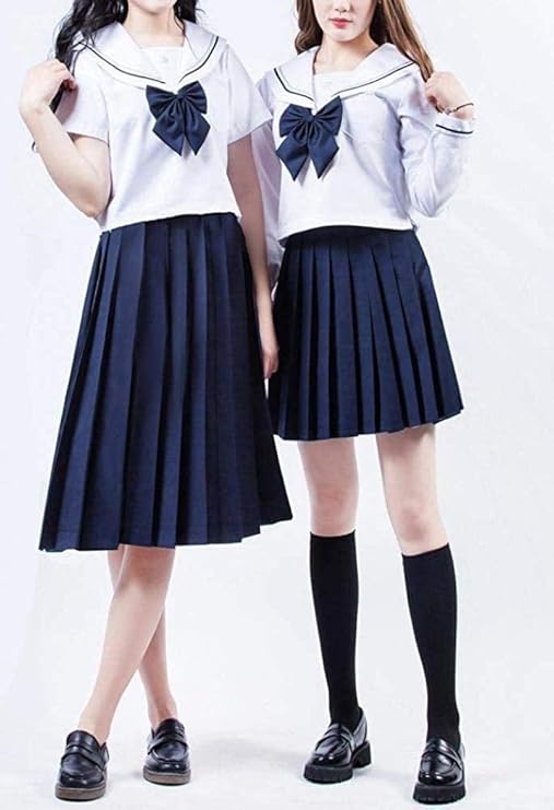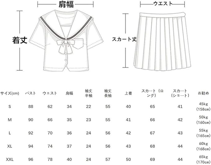 [Aculldo] コスチューム セーラー服 3点セット 制服 学生服 白い 二本 半袖 長袖 女子制服 JK制服女子高校生 コスプレ 可愛い 清純 学園祭 文化祭 仮装