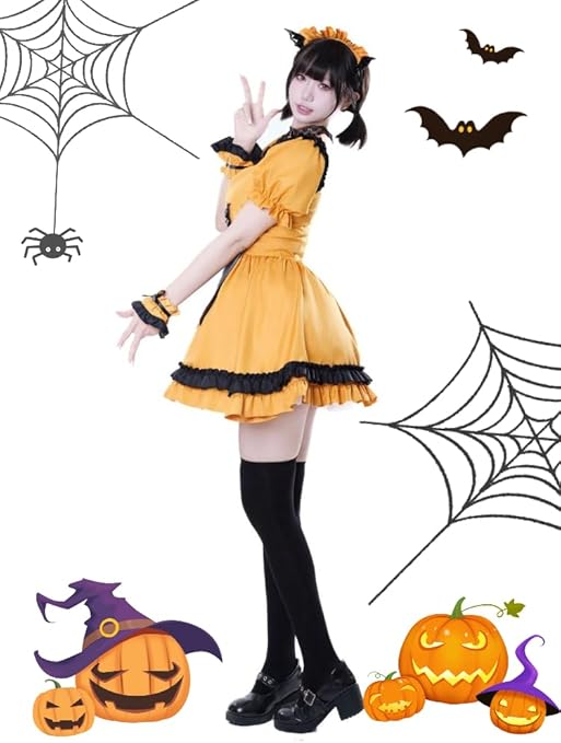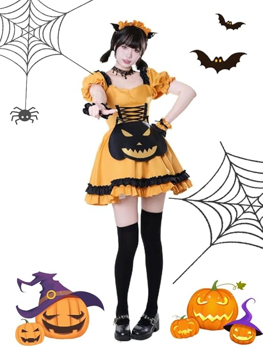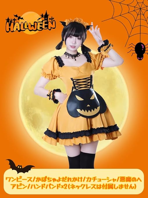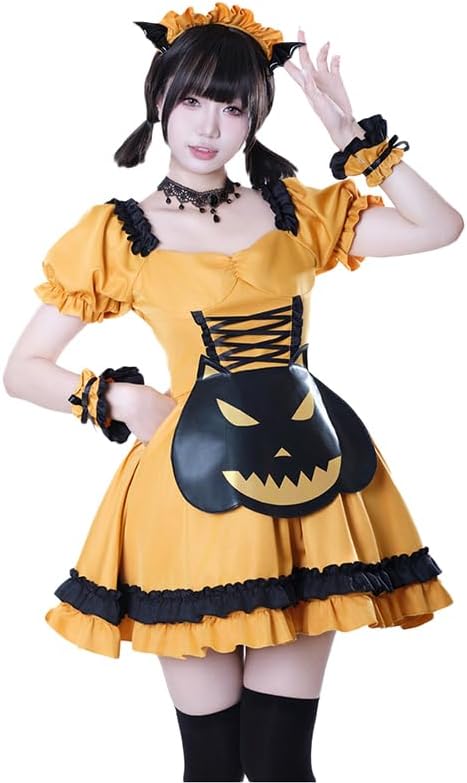 [RidrificM8] 【2024年ハロウィンのNEWスタイル】ハロウィン コスプレ 衣装 レディース エプロン 魔女 魔法使い ロリータ 大人 仮装 メイド服 セクシー 可愛い 大人用 ワンピース コスチューム かぼちゃ 悪魔 ウィッチ オレンジ 人気 ワンピース パーティー イベント 撮影 文化祭 学園祭 cosplay