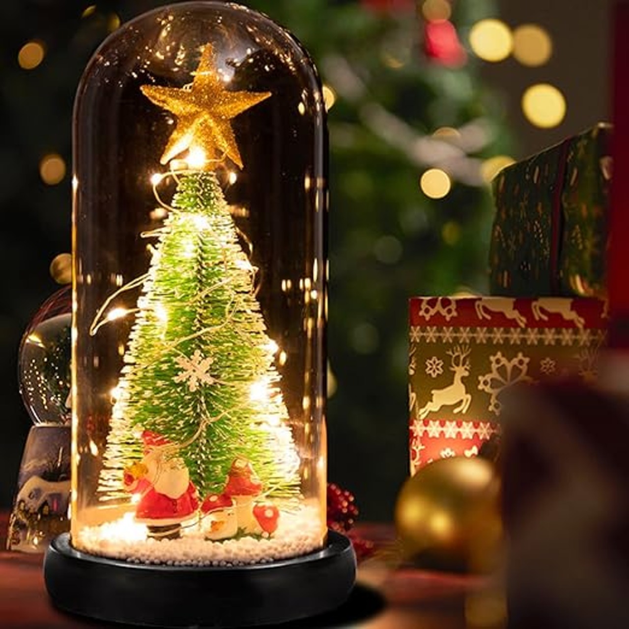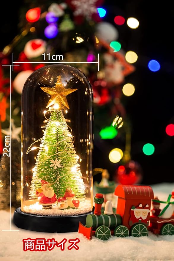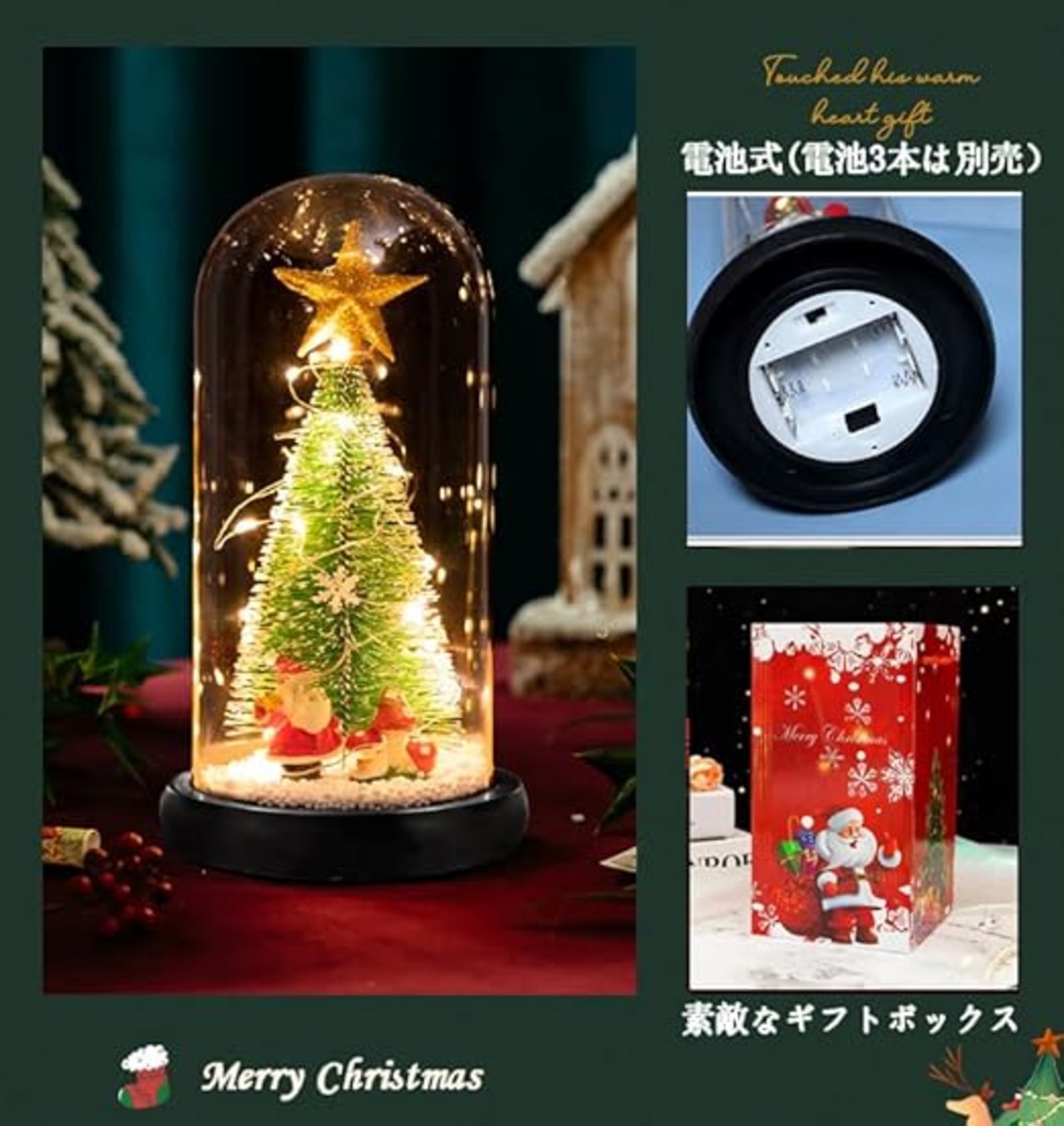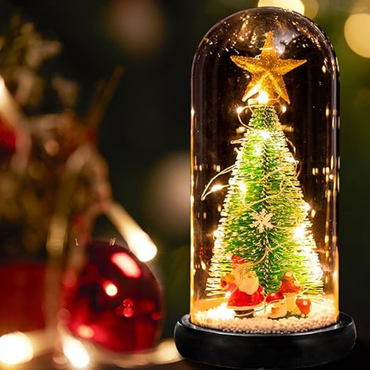 Koutoumor ミニクリスマスツリー ガラスドーム 卓上ミニクリスマスツリー 電池式 LEDライト クリスマス飾り クリスマスプレゼント クリスマスギフト ガラスドームに入ったクリスマスツリー 卓上 置物 ギフト クリスマス雰囲気作り 記念日 メリークリスマス お祝いに