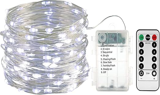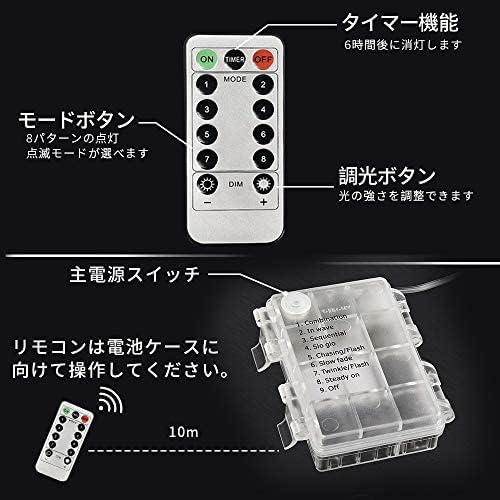 LEDイルミネーションライトAyasoon ジュエリーライト 100球 10m 電池式 リモコン付 8パターン 点滅 点灯 タイマー機能 防水 防塵仕様 屋外 室内 ガーデン 正月 クリスマス 飾り ストリングライト (ホワイト)