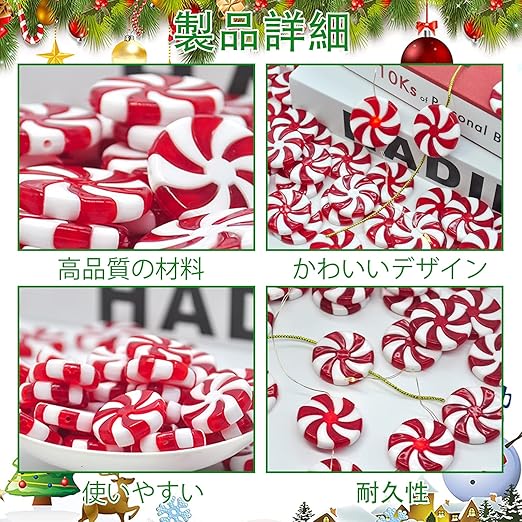 クリスマスオーナメント 50点セット キャンディ ロリポップ アクセサリー スワール ペパーミント装飾 DIY クラフト クリスマスツリー オーナメント ハンギングデコレーション デコレーション