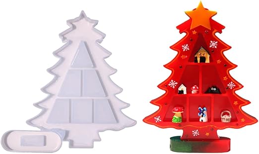 DeryArcle シリコンモールド クリスマス飾り ツリー形 ショーウインドー 置物 収納 入れ物 かわいい ファッション オーナメント テーブル置物 アクセサリー クリスマス ミニ 3D立体 装飾用 おしゃれ ジュエリー エポキシ樹脂 レジン液 半透明 DIY手作り 祝日の贈り物 プレゼント ホームデコレーション用 (A)