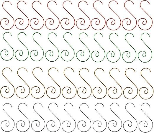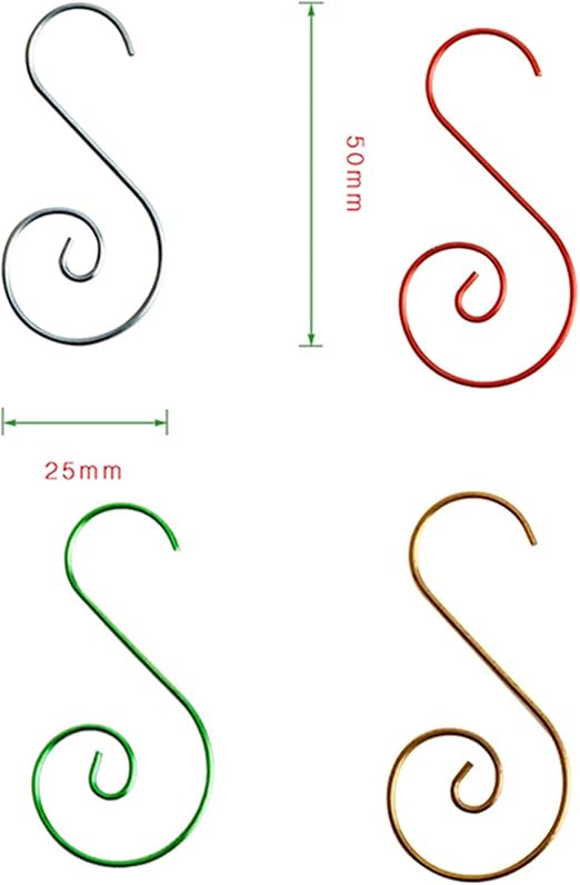クリスマスフック メタル 80枚セット 赤 緑 ゴールド シルバー オーナメント ハンガー S字 フック クリスマスツリー飾り クリスマスオーナメントフック デコレーション (C)