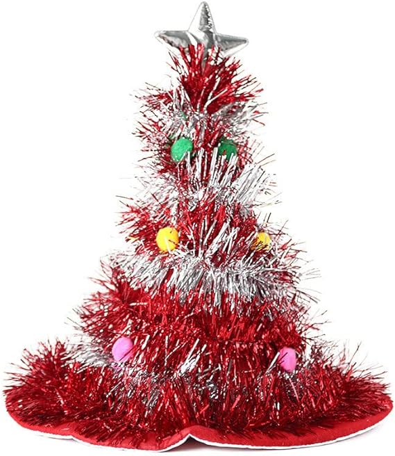 [Lhyxuuk] クリスマス帽子 LEDクリスマスハット光るサンタ帽子クリスマスツリー キャップ 帽子 被り物 コスプレ小道具 面白い 帽子 クリスマス ハロウィン イベント パーティー 面白い 撮影道具 (シルバー+レッド)
