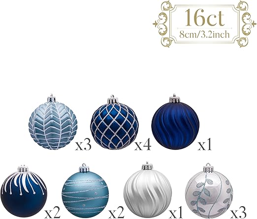 Valery Madelyn クリスマス オーナメント クリスマスボール ツリー飾り 8cm 16個入り 北欧風 銀青色 クリスマスボール シルバー ブルー ゴージャス カラー人気 流行 ボール クリスマス ツリー 飾り 飾り付け おしゃれ ゴージャス