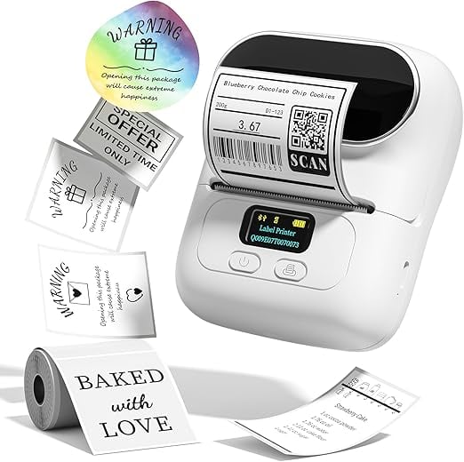 ラベルプリンター Pesuza M110 スマホ PC対応 宛名ラベルプリンター ラベルライター シールプリンター バーコードプリンタ スマホプリンター 値札プリンター ラベルメーカー 中小企業用プリンター Bluetooth接続 領収書 冷蔵庫収納 食品表示 名前 アドレス 郵便宛名 梱包発送 Android/IOS適応 幅20-50mm 黒文字 連続印刷 充電式 ホワイト 40x30ラベル付き