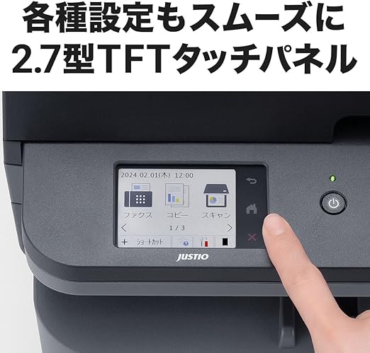 プリント速度(片面):モノクロ約34枚/分、液晶パネル:2.7型TFTタッチパネル
