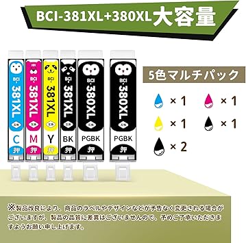 [パッケージ内容] BCI-380XL(PGBK) 2本 BCI-381XL(BK/C/M/Y) 各1本 個別包装 全6本 取扱説明書1枚