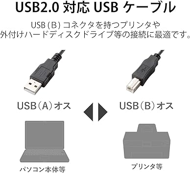 【2010年モデル】 エレコム(ELECOM) RoHS指令準拠&環境配慮パッケージ エコUSBケーブル プリンター用 USB2.0 A-Bタイプ 1m ブラック U2C-JB10BK