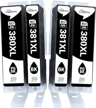 【SANCTink】Canon 381 380 XL BK PGBK 互換インク キャノン用 BCI-381XL BCI-380XL 黒 4本セット 大容量 対応機種:PIXUS TS6330 TR8630 TR9530 TS7430 TR703 TS8130 8230 8330 8430 TS6230 TS6130 TR8530 TR7530 TS7330 TS9130 TS703 プリンター
