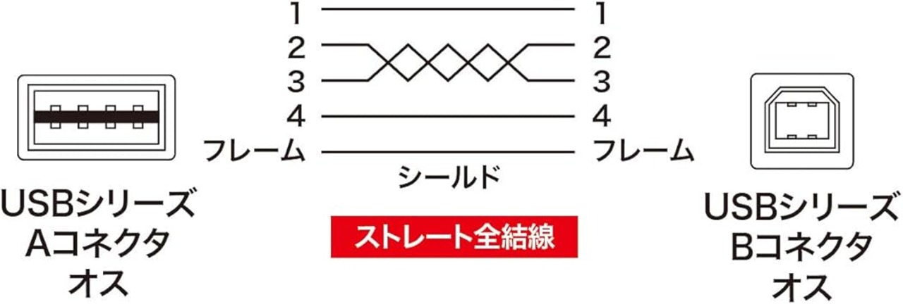 USB Aコネクタのパソコンと、USB機器(プリンター・HDD・USBハブ・スキャナなど)との接続やUSB機器同士を接続するケーブルです。