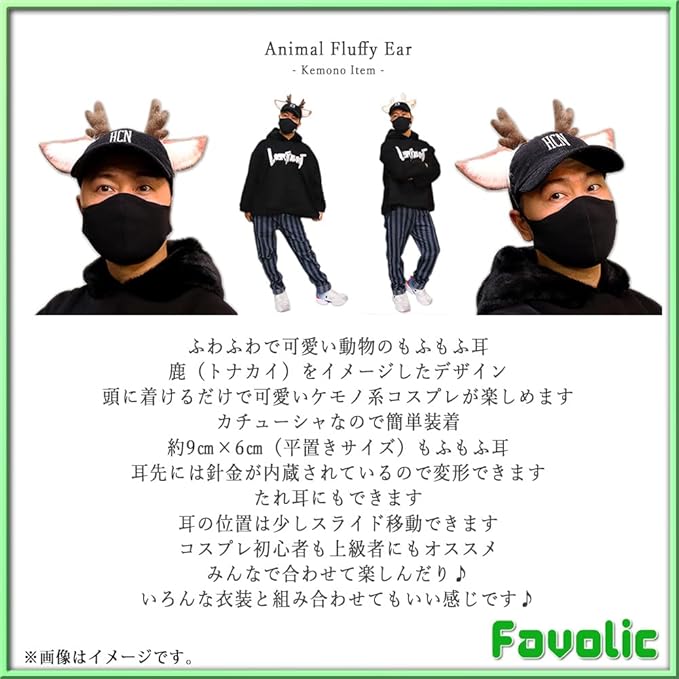 トナカイ もふもふ耳 角 ふわふわ 獣人 動物 鹿 クリスマス カチューシャ ケモナー コスプレ 仮装 犬マスク 男女兼用 衣装 Favolic