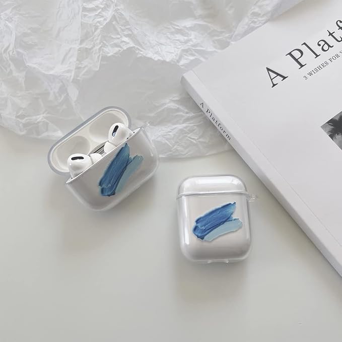 ONLYOU Airpods pro ケース おしゃれ 韓国 Airpods pro2 ケース かわいい TPU ペイント デザイン シンプル クリア 透明 エアーポッズ プロ カバー レディース お揃い イヤホンケース カラビナ フック (AirPodsPro (第1/2世代) ブルー)