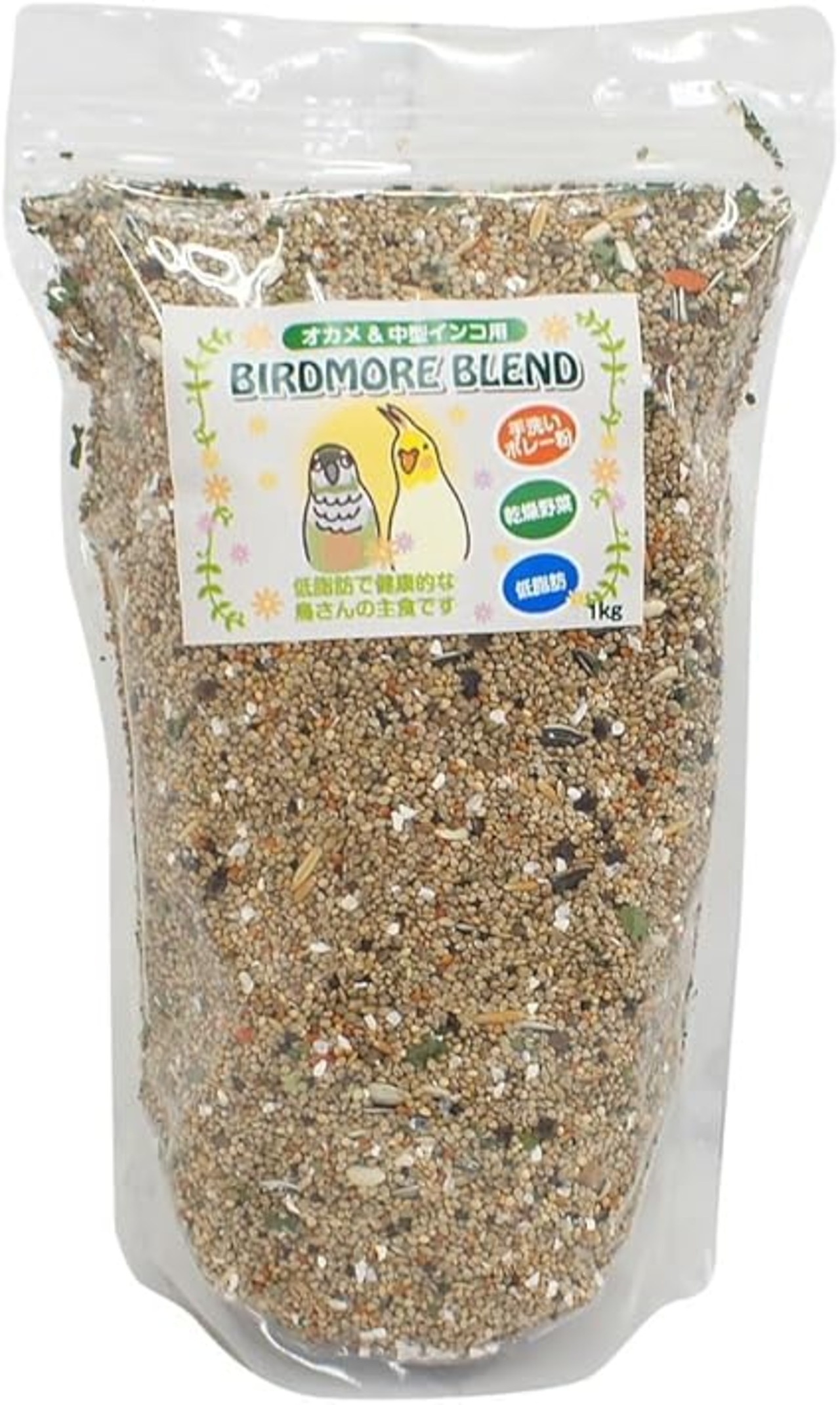 BIRDMOREオリジナル(手洗いボレー粉入)鳥 インコ 皮付き 餌 中型インコ&オカメインコ用 1kg