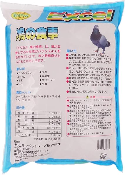 原材料:トウモロコシ、マイロ、小麦、ソバ、大麦、あさの実、サフラワー、豆類