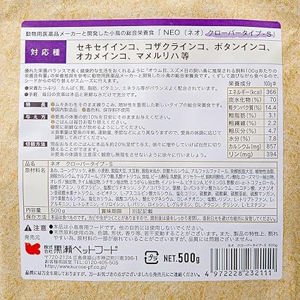 黒瀬ペットフード NEO クローバータイプ S 500g 鳥 フード エサ 餌 ペレット