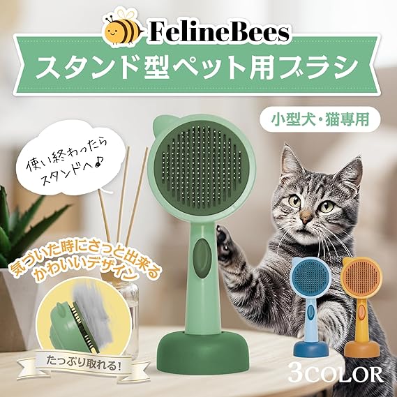 FelineBees 猫 犬 ブラシ 皮膚に優しい 痛くない 長毛 短毛 ヒーリングブラシ スリッカーブラシ くし ペット用 ペットブラシ 毛取り ブラッシング フィーラインビーズ(モスグリーン)