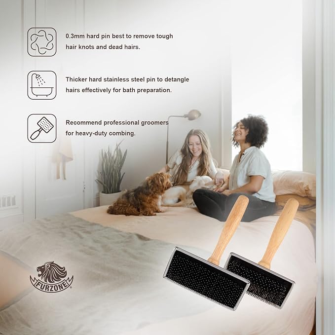 優しいブラッシング: 柔軟性あるハードピンと細くしなやかな高品質ピンにより被毛にやさしいブラシッングができます。ムダ毛・抜け毛を取り除き、被毛をふんわりしなやかに仕上げます。高品質な304ステンレス鋼ピン、台湾天然木を採用、安全性、耐久性、使いやすさを兼ね備え、環境にも優しいです。