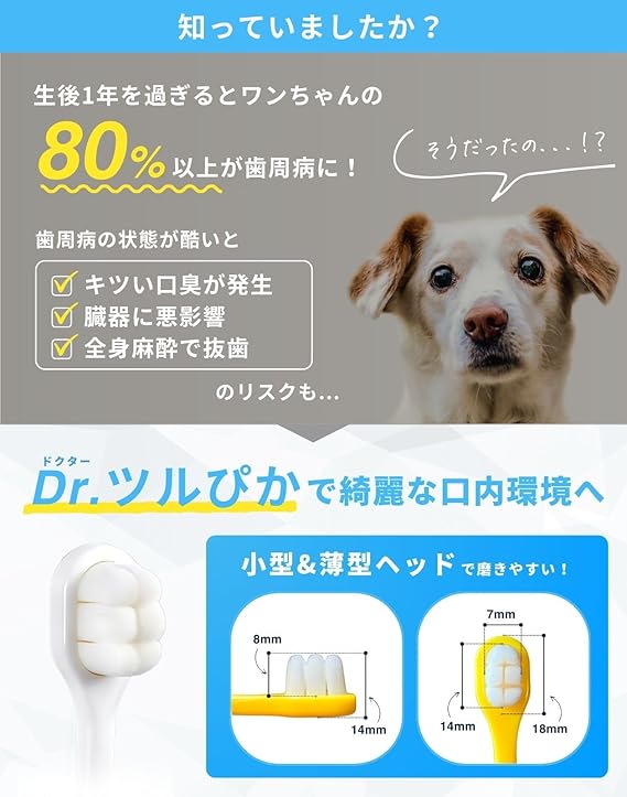 【犬用歯ブラシの新定番】小型犬にもぴったりな犬用歯ブラシで、毎日の歯磨きが楽しくなるデザイン。6山構造が犬の歯の細部まで届き、徹底ケアが可能です。