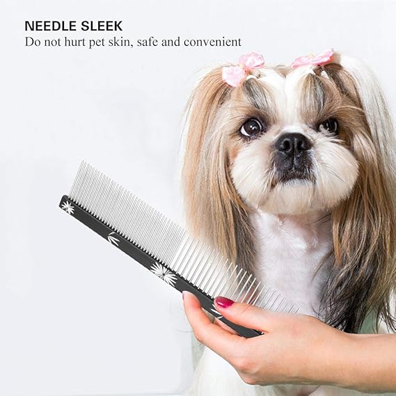 ペット用櫛 犬猫用くし 両目櫛 ペットコーム 抜け毛取り 毛繕い 静電防止 ペットトリミング用コーム 犬猫用 両目金櫛 ステンレス 多機能 滑り止め ダブルコーム歯毛のお手入れ用品 (ブラック)