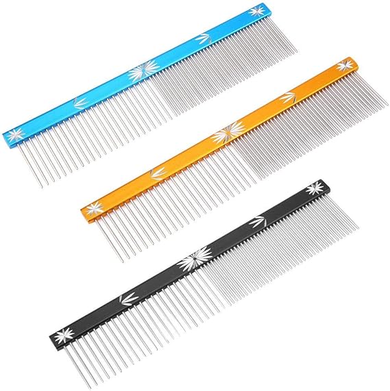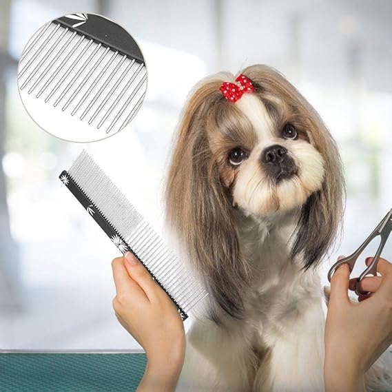 【ダブルコーム仕様】犬や猫用の櫛のまばらな歯は結び目のある髪の毛をほぐすために使用します。しっかりした歯は目や耳、足の整えに使用されます。