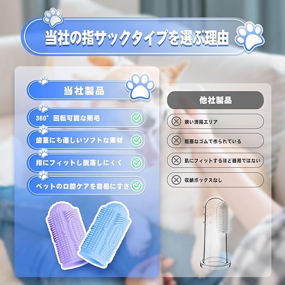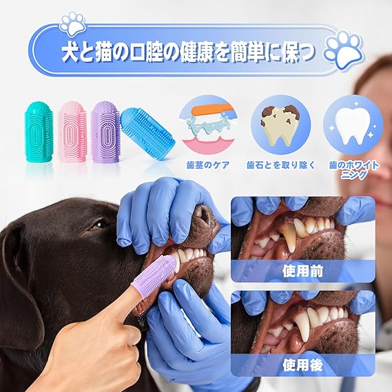 指にフィットし磨き易い:指サック型でペットの不安が少ない。指にフィットし脱落しにくく、優れた耐摩耗性により徹底的なクリ一二ングを行えます