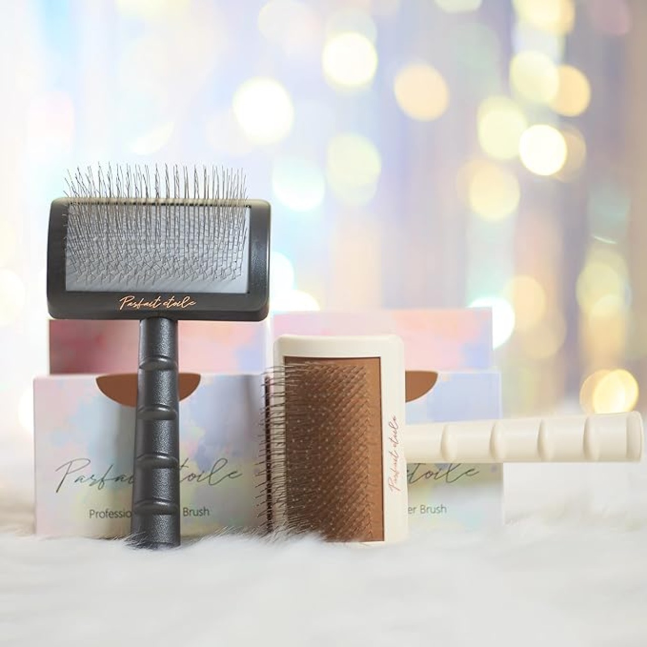 犬 ブラシ 猫 ブラシ スリッカーブラシ ペットブラシ不思議な超長針ディープクリーン用 ペットを静かに整理することができて ゼロ距離の猫を引っ張って 長毛の猫 短毛の猫 .快適な安全な清潔です (ブラック/ホワイト,17.0cm) (White)