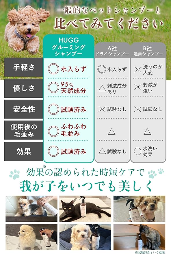 HUGG 犬 猫 グルーミングスプレー 天然成分95%オーガニック ブラッシングスプレー ペット用 ドライシャンプー 【消臭・除菌99.9%除去】