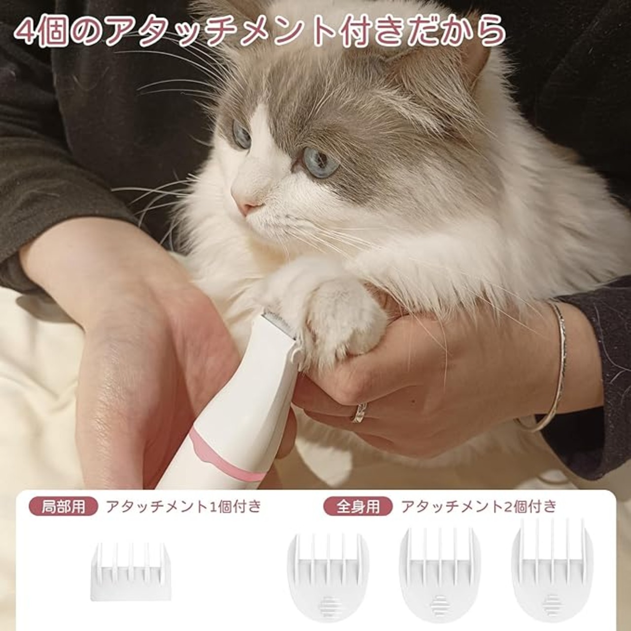 TongWey 犬用バリカン 猫 爪切り 低騒音 バリカン 犬 電動バリカン ペット バリカン 2段階スピード 足裏 肉球 顔周り お尻周 爪研ぎ 全身カット 多機能バリカン 高精度 USB充電 コードレス 初心者プロ対応 日本語説明書付き (ピンク)