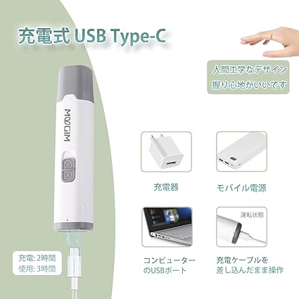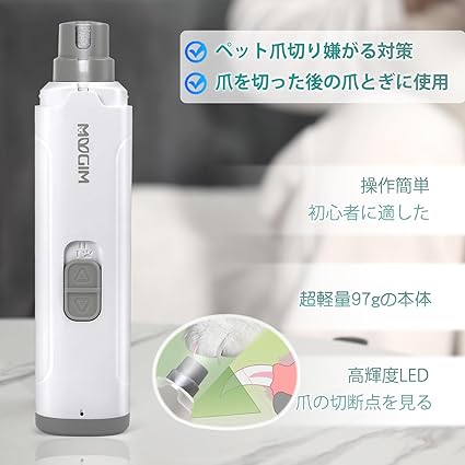 MUGIM ペット用爪やすり 電動 爪とぎ LEDライトで爪の血管を照ら 小動物用爪研ぎ器 犬猫兼用の爪切り 爪削り 爪鑢 2段階の速度調節 USB充電式 予備の研ぎヘッド付き