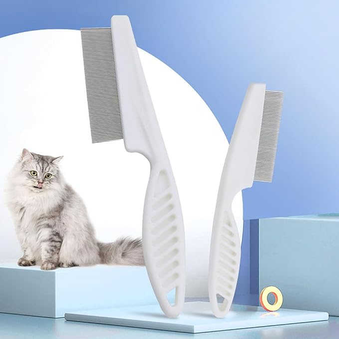 ペットコーム ノミ取り櫛 犬猫用櫛 【2本、18cm+14cm】犬猫美容ブラシ 水洗いOK 衛生的 丸い先端 傷つけにくい ステンレス製犬猫用櫛 のみとりくし ホワイト