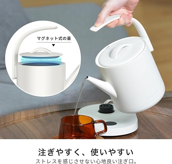 【曲線美学・人間工学設計】Epeios COVE電気ケトルは人間工学設計の手に馴染みやすく、手にしっかりとフィットする形状ボディは、デザインの調和だけでなくな機能を搭載し、暮らしに、快適提案してくれます。