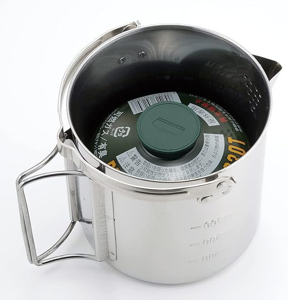 カクセー ケトル クッカー 鍋 ステンレス 満水容量1.2L 適正容量0.7L ガスカートリッジが入る メモリ入り 袋付き アウトドア キャンプ SOLA ソラ PP-06
