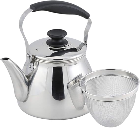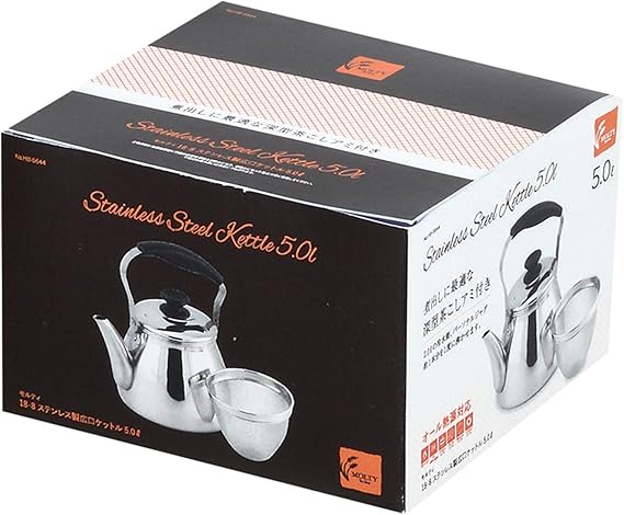 素材・材質:本体/ステンレス鋼(クロム18%・ニッケル8%)(底の厚さ0.5mm)、注ぎ口/ステンレス鋼(クロム18%・ニッケル8%)、蓋/ステンレス鋼(クロム14%)、取っ手・つまみ・座板/フェノール樹脂(耐熱温度150度)、茶こし/ステンレス鋼
