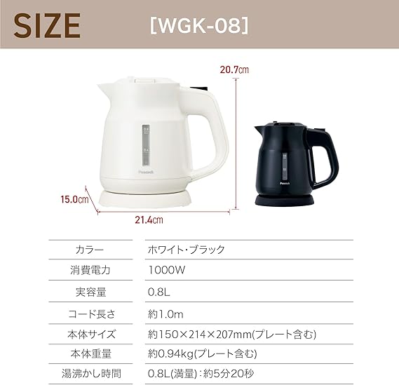 ピーコック 電気ケトル 湯沸かし やかん 容量 0.8L。 小型 ポット で コーヒー、 紅茶や カップ麺 作りなどに便利。転倒湯漏れ防止 空だき防止 安心 安全 新生活 一人暮らし 単身 シングルライフ 就職祝いにぴったりの電気ケトル 。