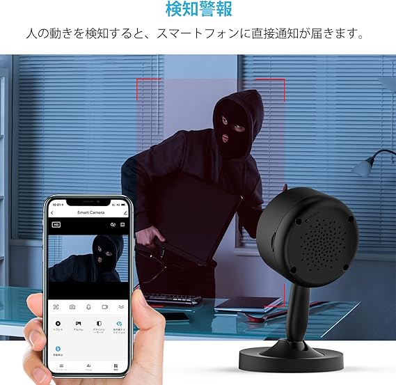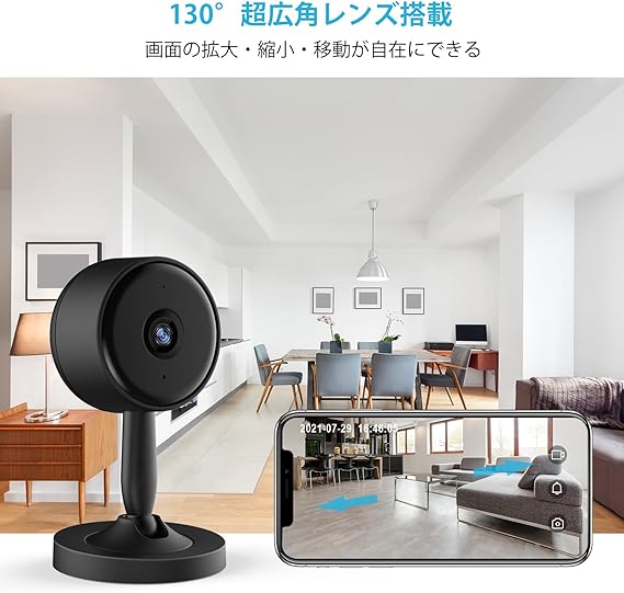 【200万画素の高画質撮影】 一般的な見守りカメラよりも高画質な300万画素を採用。 表情まではっきりと映るクリアな映像をご覧いただけます。 【スマホアプリでどこからでも監視】 専用アプリで外出先から リアルタイムの映像をいつでも見ることができます。 アプリから過去の映像を再生することも可能です。