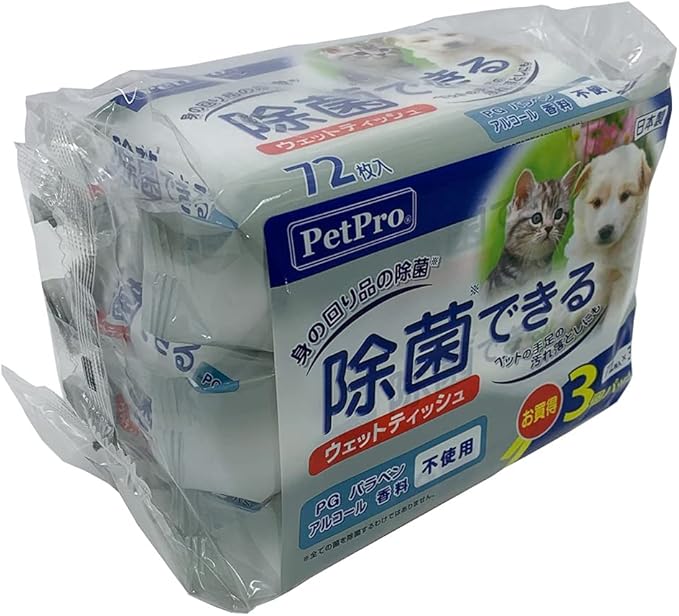 ペットプロ 除菌できるウェットティッシュ72枚入×3P