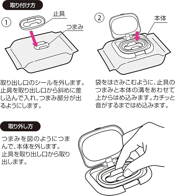 素材・材質:本体、止め具=ポリプロピレン パッキン・バネ=シリコーンゴム