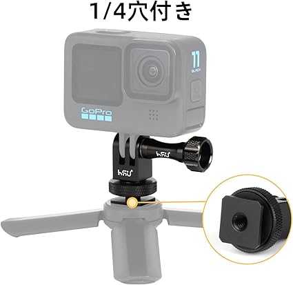 HSU アルミ ホットシューマウントアダプター 1/4穴付き 三脚マウント GoPro Hero13/12/11/10/9/8/7/6/5、dji osmo action 、AKASO/ビデオカメラ/一眼レフ/DSLR対応(ブラック)