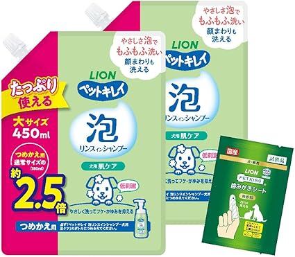 ライオン 泡タイプ ペットキレイ 肌ケア 泡リンスインシャンプー つめかえ大 450?×2個セット 歯みがきシート付き LIONPET