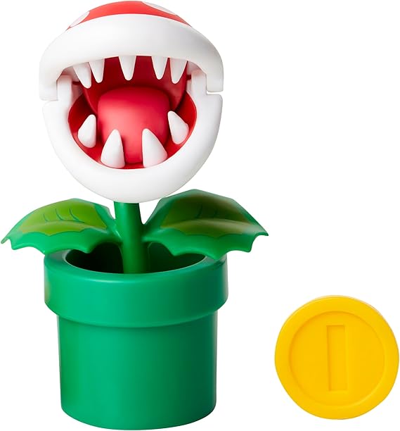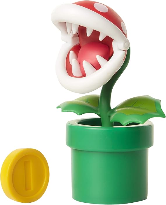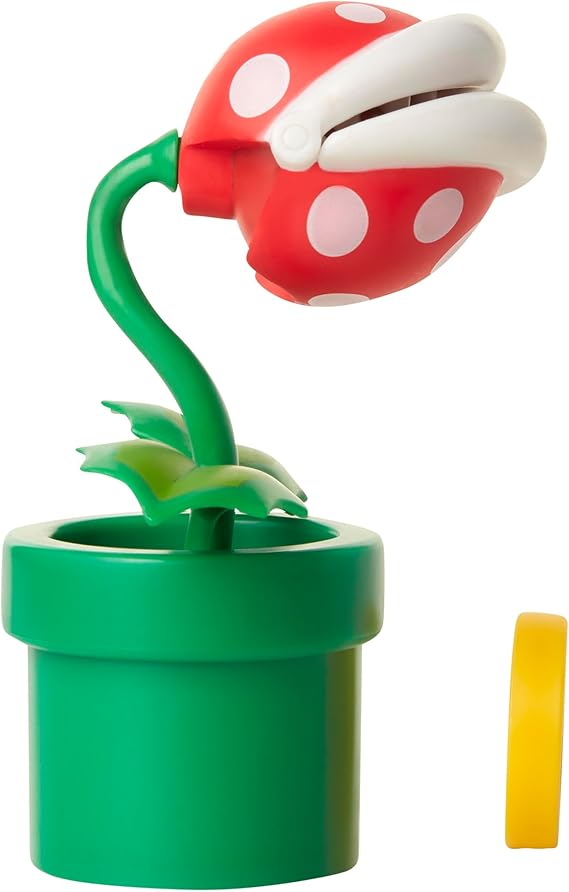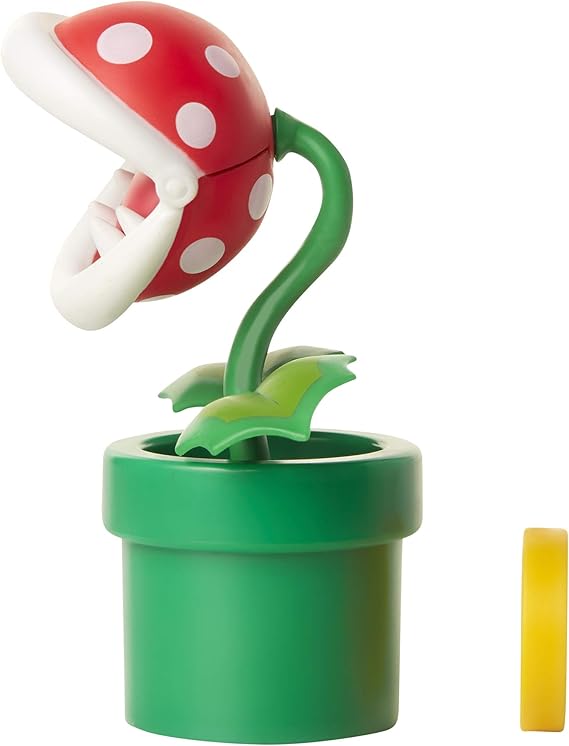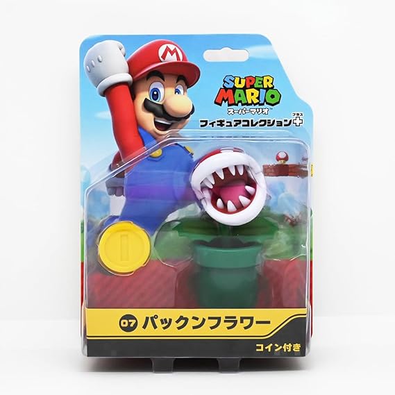 「スーパーマリオ フィギュアコレクション プラス」は可動部が多く、さまざまなポージングができる高さ約10cmのアクションフィギュア!さらに各フィギュアにはおなじみのアイテムも付属しており、フィギュアや他ラインナップの商品と組み合わせてより楽しむことができます。【FCP-007 パックンフラワー】はコイン付き。花の根元、口、茎の根元が可動します。