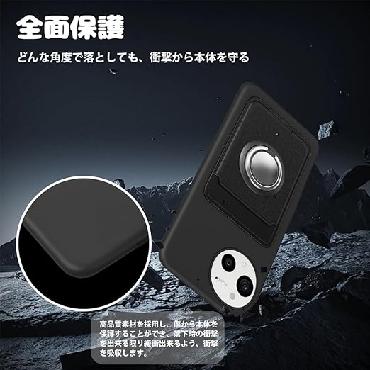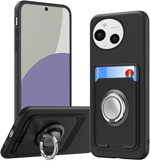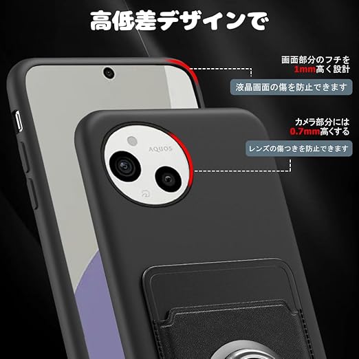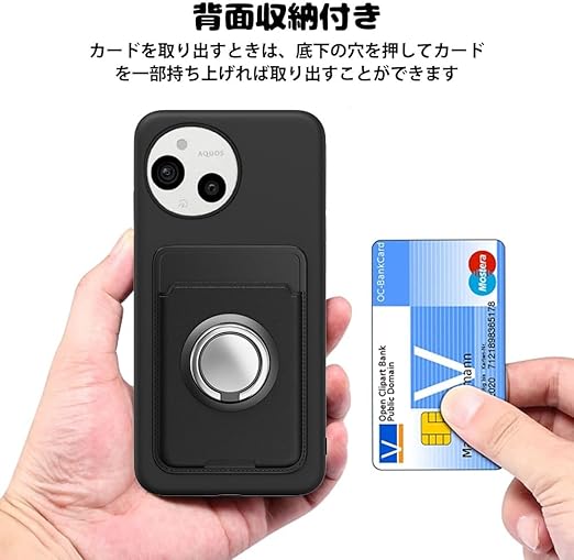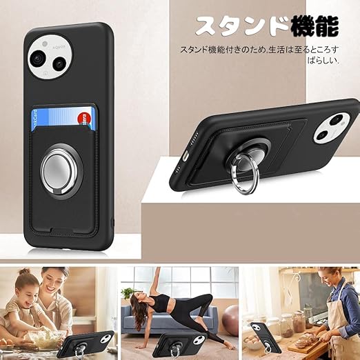 AQUOS sense9 SH-53E ケース AQUOS SH-M29 ケース カード収納 リング付き 保護カバー アクオス センス9 スマホケース リング スタンド付き ストラップホール付き シリコン スタンド機能 耐久 マット質感 滑り止め 指紋防止 黑