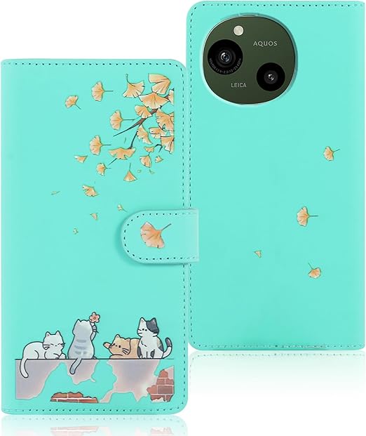 Reddylin 対応 AQUOS Sense9 ケース 手帳型 アクオスセンス9 ケース 手帳型 かわいい猫 落ち葉 Aquosセンス9 ケース 手帳型 Aquos Sense9 カバー カード収納 軽量 アクオス センス 9 カバー 耐衝撃 Aquos sense9 スマホケース aquos sense9ケース スタンド機能 aquos sense9 携帯ケース 全方位保護 財布型 -グリーン