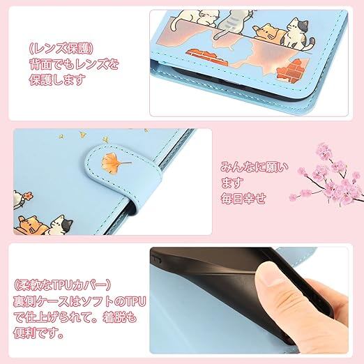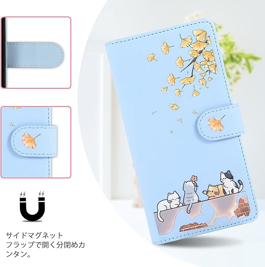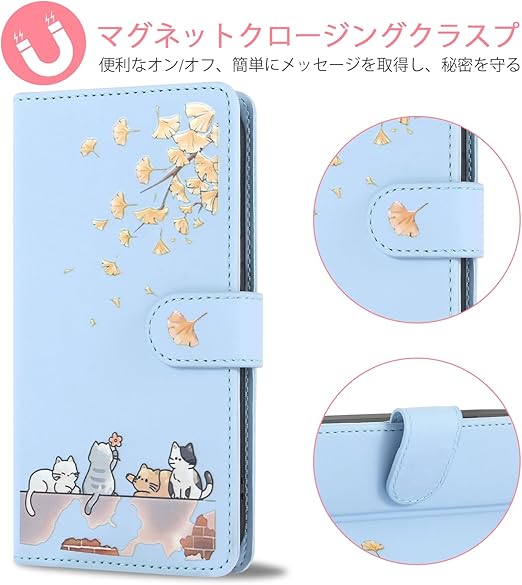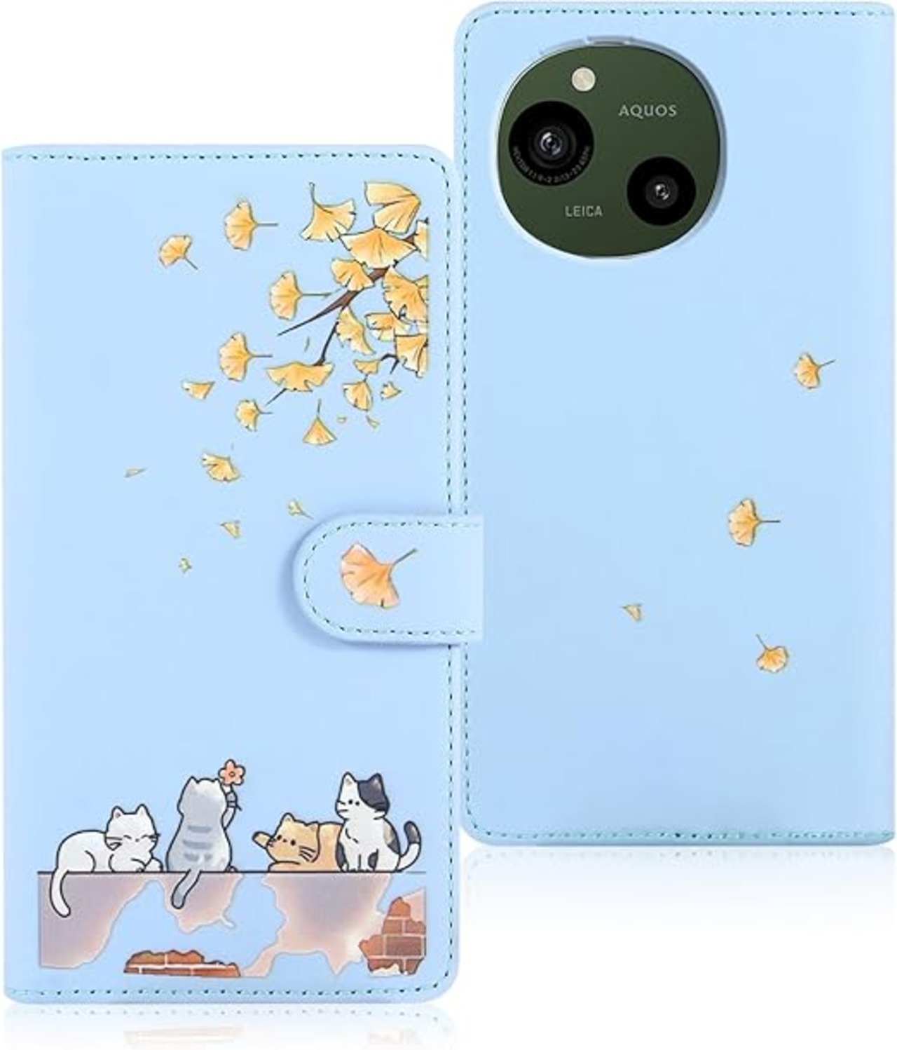 Reddylin 対応 AQUOS Sense9 ケース 手帳型 アクオスセンス9 ケース 手帳型 かわいい猫 落ち葉 Aquosセンス9 ケース 手帳型 Aquos Sense9 カバー カード収納 軽量 アクオス センス 9 カバー 耐衝撃 Aquos sense9 スマホケース aquos sense9ケース スタンド機能 aquos sense9 携帯ケース 全方位保護 財布型 -ブルー