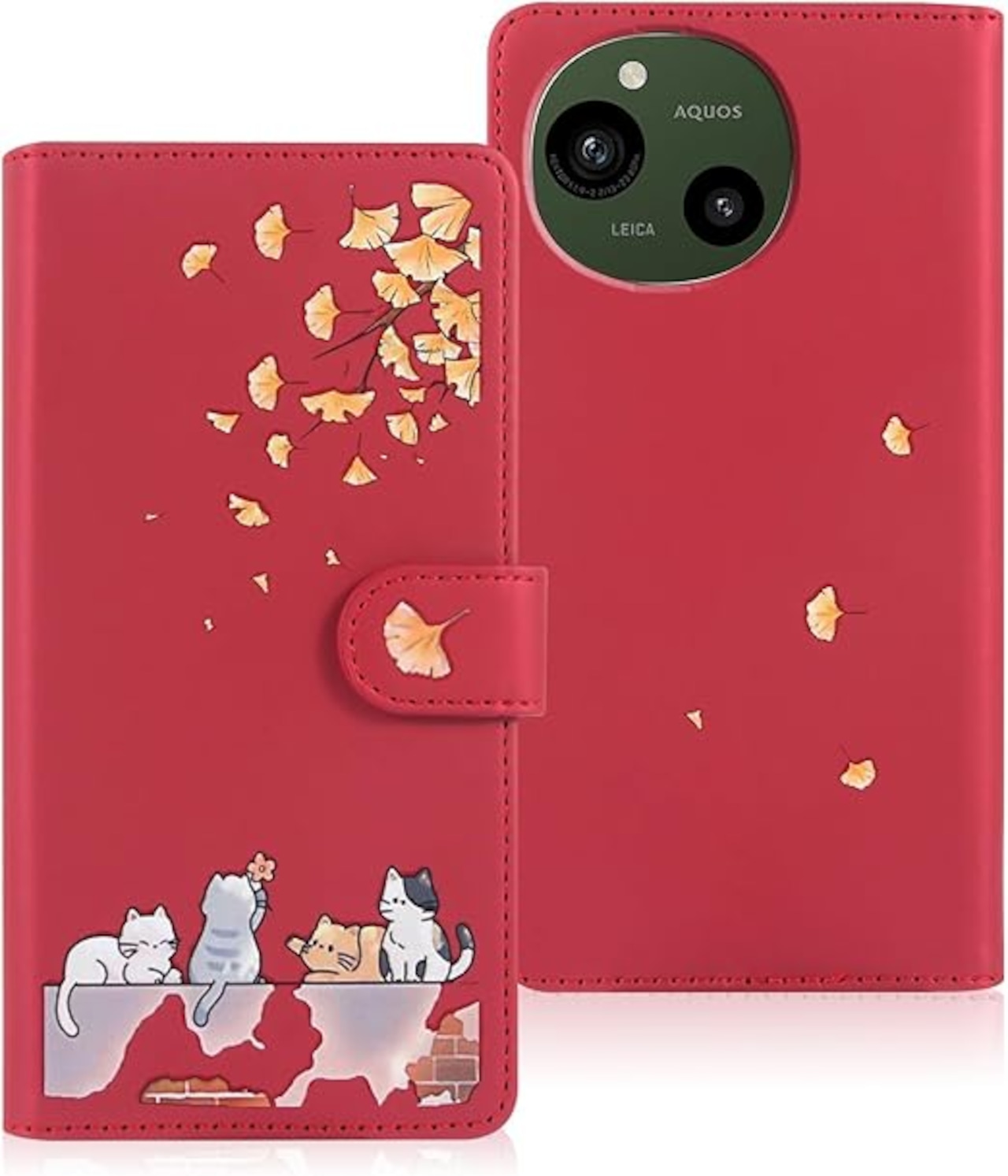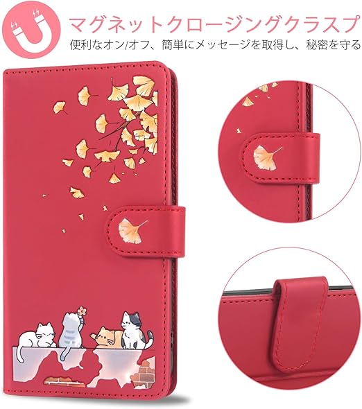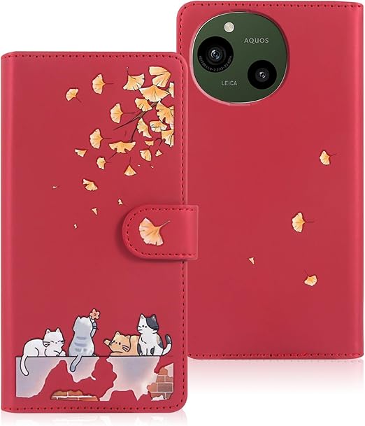 Reddylin 対応 AQUOS Sense9 ケース 手帳型 アクオスセンス9 ケース 手帳型 かわいい猫 落ち葉 Aquosセンス9 ケース 手帳型 Aquos Sense9 カバー カード収納 軽量 アクオス センス 9 カバー 耐衝撃 Aquos sense9 スマホケース aquos sense9ケース スタンド機能 aquos sense9 携帯ケース 全方位保護 財布型 -レッド